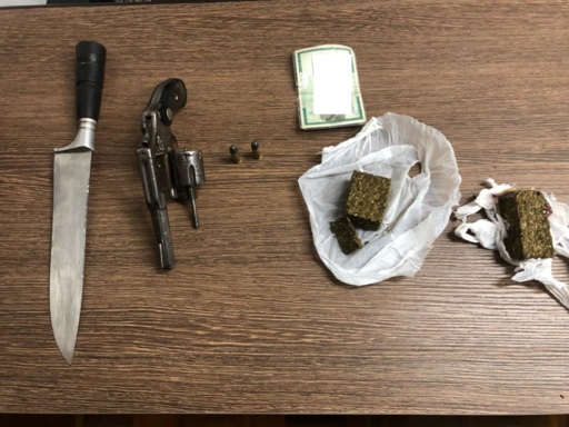 A droga foi localizada em um sofá, junto de uma faca. O revólver foi encontrado em outro cômodo da residência. Ele tem calibre 32 e numeração raspada. A droga, maconha, pesou 71,5 gramas.