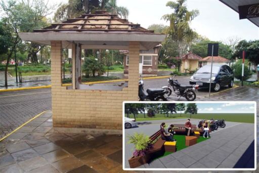 A prefeitura de Santiago está investindo em novas áreas de lazer e de convivência e, em breve, deverá ganhar o seu primeiro parklet, um espaço junto à calçada onde, antes, havia vagas de estacionamento. A área escolhida fica em frente ao Bradesco, quase na esquina da Rua dos Poetas, no Centro, onde ficava o engraxate Tio Pedro, uma das figuras populares de Santiago. A casinha usada pelo engraxate ficou ociosa depois do falecimento dele e está sendo retirada para dar lugar a bancos, floreiras, luminárias e estrutura para quem quiser acessar internet.