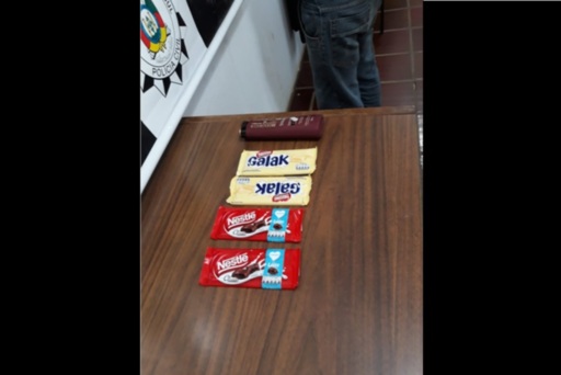 Um homem, que não teve a idade divulgada, foi preso por furto de barras de chocolate e xampu no último domingo em São Sepé. As informações são da Brigada Militar (BM).