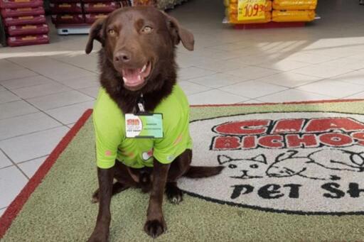 O cão chegou na pet shop há mais ou menos oito meses, magro e doente, para ficar temporariamente no local. O tempo foi passando, ele foi ficando grande e saudável e conquistou o coração dos clientes e funcionários - inclusive, foi adotado pela Gésica Lopes, que trabalha no estabelecimento.