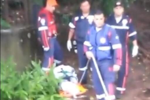 A cena inusitada foi gravada por uma pessoa que assistiu a tudo e foi parar no Facebook. O paciente havia caído de um telhado e precisou ser imobilizado em uma maca para a travessia. Ele foi encaminhado para a Unidade de Pronto-Atendimento (UPA), que não se encontra mais na UPA. .