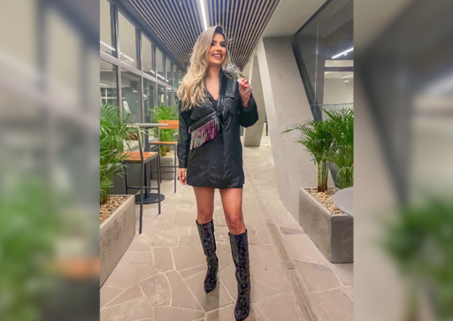 Eu sou tão colorida que me sinto básica quando estou de preto (risos). Para o coquetel de inauguração da Usina das Massas, no Vitta Center, coloquei um vestidinho curto (a tendência do comprimento mini) e um jaquetão por cima.