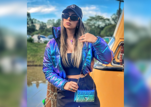 Todo meu amor por metalizados! Essa jaqueta puffer é o meu xodó. Eu me empolgo quando crio um tema para o look (risos). Nessa vibe tom de sereia, joguei a bolsa combinando e pingentes. O boné, além de salvar de um “bad hair day” (risos), também deixa qualquer look mais estiloso.
