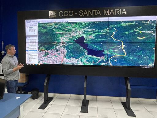 Ele mostrou como funciona a central de monitoramento e controle, com um grande telão interativo, que mostra o nível em tempo real de todos os grandes reservatórios da cidade, das bombas de recalque e da pressão em centenas de pontos.
