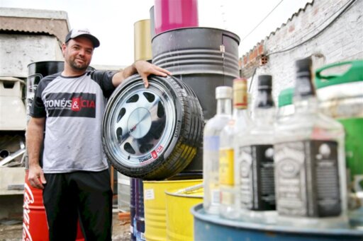 Na casa do santa-mariense Maurício Barbosa Pereira, 39 anos, a arte se une diariamente com a reciclagem de itens que são desprezados por fábricas, lojas e oficinas. Há, aproximadamente, dois anos, ele resolveu, por passatempo, aproveitar as sucatas e ferramentas que tinha no galpão do pátio e, a partir delas, criar itens de mobília e decoração. Desta forma, surgiu a Tonéis & Cia.