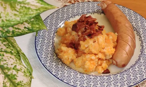 - Misture o bacon frito em cubinhos ao purê já pronto.