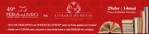 O espaço "Livro Livre" ainda recebe os portugueses Afonso Cruz, no dia 9, e Pedro Lamares, no dia 10, e a escritora e tradutora gaúcha Natália Borges Polesso no dia 12. Todos os bate-papos ocorrem no Theatro Treze de Maio, às 19h. A 50ª Feira do Livro de Santa Maria encerra no dia 13 de maio.