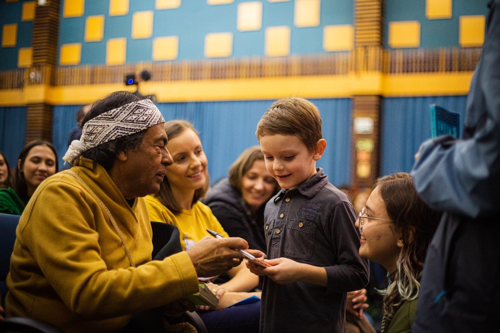 – Ele já esteve na feira virtualmente e tinha afirmado que gostaria de vir presencialmente. É uma alegria para nós estar aqui com o auditório lotado para ver e ouvir esse pensador, mesmo com a chuva incessante. Temos uma programação muito legal até o final da feira, que tem atraído bastante público em todas as atividades. Isso significa que estamos no caminho certo.