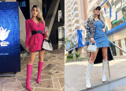 O look da semana vai ser duplo. Batalha de looks (risos). Não consegui escolher um só. Ambos têm em comum botas de cano longo, minhas queridinhas de todos os invernos. Ah, e outra coincidência, nenhuma delas discreta (risos) adoro! O look todo pink usei para o coquetel da nova Bendita no Vitta Center. Usei um cinto para fechar o blazer rosa e usá-lo como um vestido. Poderia ter colocado uma bota preta, claro, mas quis seguir a ideia do Total Pink, monocromático.