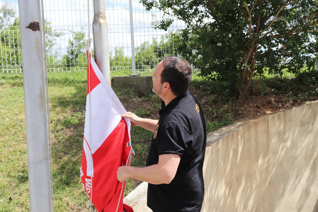 O hasteamento foi realizado durante uma visita institucional da diretoria alvirrubra à FGF. O presidente do Inter-SM, Pedro Della Pasqua, e o diretor de futebol, Marcos Pedroso, foram recepcionados pelo presidente da entidade, Luciano Hocsman, pelo vice-presidente Antônio Luiz Dal Prá, pelo secretário-geral Mauro Rocha e pelo diretor financeiro Marcelo Ducati.