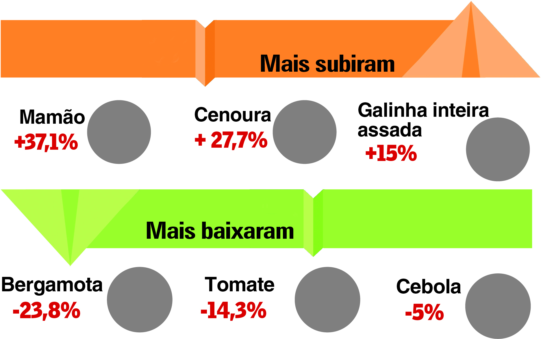 Apesar da queda do tomate, em outros produtos, a variação atingiu números significativos. Alimentos como o mamão e a cenoura registraram altas de 37,1% e 27,7%, respectivamente.