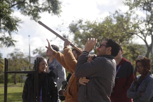 A primeira atividade da disciplina foi realizada no dia 11 de maio, no Planetário. Participaram 23 alunos da 3ª série do Ensino Médio do Instituto Estadual Padre Caetano. Com eles, vieram os professores Guilherme Santos, de Filosofia, Paola Jardim, de Física, e Thanara Christo, de Biologia.