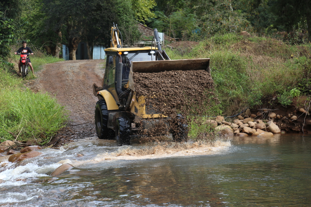 Segundo ele, as máquinas estariam na região nesta semana, mas o cronograma precisou ser ajustado devido às condições climáticas, que impedem os trabalhos. Nenhuma máquina da prefeitura de Santa Maria estava presente nos pontos visitados pela reportagem em Três Barras. Apesar disso, a prefeitura de Itaara utilizava uma retroescavadeira para arrumar uma passagem molhada no arroio da divisa, onde havia uma ponte de concreto destruída pela enchente.