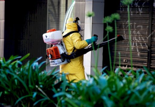 A sanitização busca combater a propagação do coronavírus. Até sexta-feira, foram confirmados 464 casos e 18 óbitos pela Covid-19 na cidade.