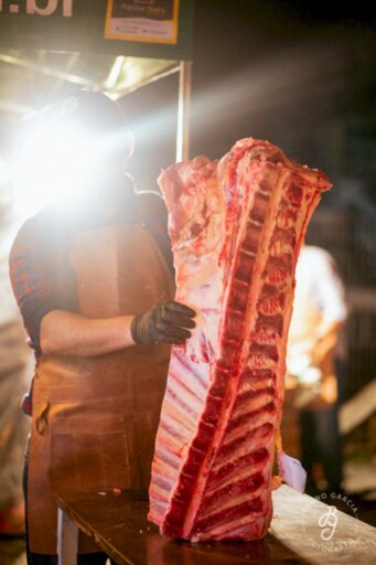 A limpeza e preparação de cortes é feita ao vivo. Depois, as peças vão direto para a churrasqueira na etapa que é feito o preparo de assado do corte. A ideia é mostrar de onde vem cada corte que é comprado no açougue ou mercado até a finalização do prato.