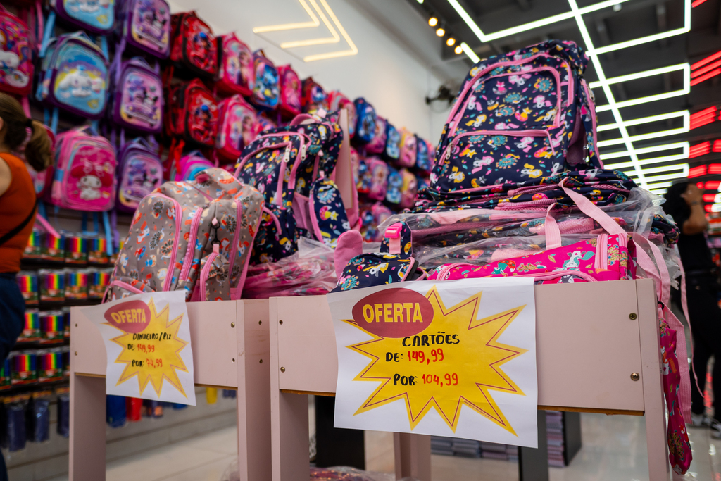 Além das papelarias tradicionais, lojas de artigos gerais também disputam a atenção dos consumidores neste período. No Calçadão Salvador Isaia, a gerente da loja Sheik, Nicole Machado Fernandes, 26 anos, percebe um aumento significativo na procura, impulsionado pelo aumento da oferta e pelas promoções. Quem paga no Pix, por exemplo, ganha desconto.