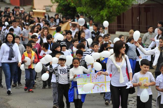 Era por volta das 10h30min desta quarta quando perfilados crianças e adolescentes, muitos vestindo roupas brancas, começaram deixar o prédio e tomar a rua em frente à da escola. Nas mãos, os pequenos levavam balões e cataventos brancos. Os maiores, carregavam cartazes com palavras como paz e segurança. À frente do grupo, professores seguravam uma faixa com a frase: É na luta que se aprende, se estuda".
