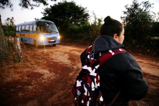 Para poder aprender, cerca de 75 crianças dependem da van escolar para chegar até a Escola Estadual de Arroio Grande. Os motoristas já estão acostumados com o itinerário. A estrada de chão com pedras soltas e buracos faz com que a viagem demore um pouco, mas a boa conversa entre o motorista e as crianças ameniza o sono e o frio.