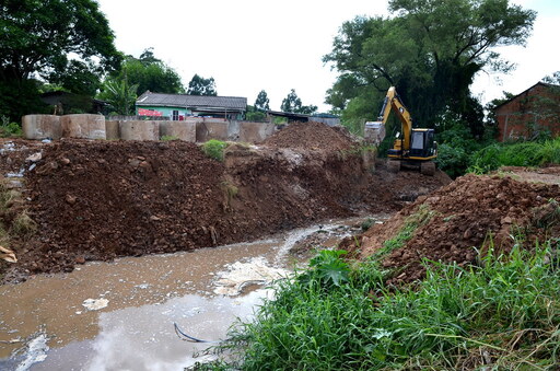 Para resolver a situação, foi necessária a escavação do local e a limpeza no trecho da sanga. Após, serão instalados mais de 20 tubos novos e o aterro da via. O trabalho de melhoria seguirá pelos próximos dias.