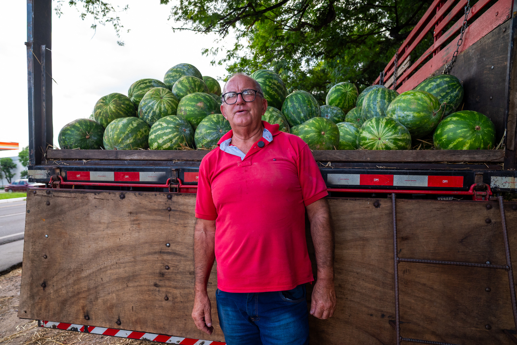 Na RSC-287 (Faixa Nova), João Antônio Colpo faz parte do cenário há mais de 30 anos. Aos 61 anos, ele vende melancias desde os 17 e acompanha de perto as mudanças no consumo e no mercado. Nesta safra, já comercializou cerca de 10 mil melancias, compradas de produtores de Santa Maria, Cacequi e Cruzeiro do Sul.