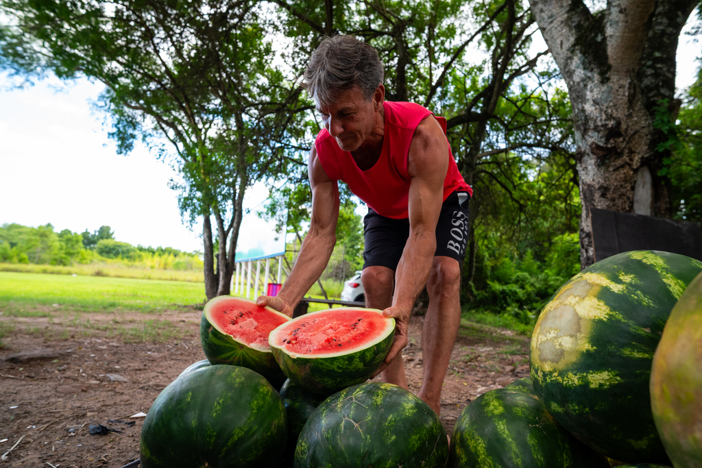 Ele também compartilha o que aprendeu ao longo dos anos sobre como escolher uma fruta de qualidade. Segundo ele, melancia leve costuma ser oca. O talo também é um indicativo: