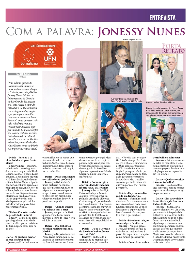 Em 2018, o Diário produziu uma matéria especial com o artista, na qual ele relata sua trajetória e produções.