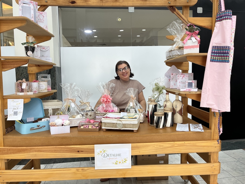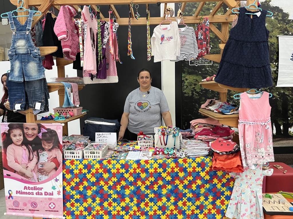 Já a mãe atípica Daiane Brum Lopes, 41 anos, participa da feira como forma de complementar a renda e divulgar o próprio trabalho. Mãe de duas meninas com diagnóstico dentro do espectro autista, ela conta que precisou adaptar a rotina profissional após o nascimento das filhas.