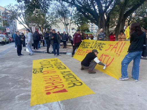 Na tarde desta quarta-feira (25), foi realizado um protesto contra o aumento da tarifa do transporte coletivo em Santa Maria. Os manifestantes criticam a aprovação da tarifa técnica, que passou de R$ 6,85 para R$ 7,65 e pode impactar no valor cobrado na roleta, atualmente em R$ 5. O ato foi organizado pelo Diretório Central dos e das Estudantes (DCE) da Universidade Federal de Santa Maria (UFSM).