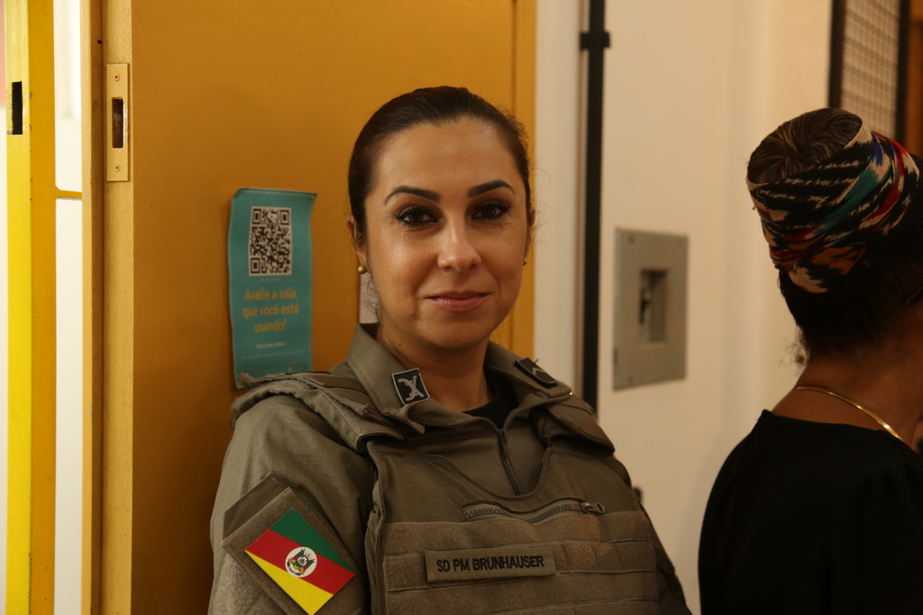 A Brigada Militar esteve no local por meio da Patrulha Maria da Penha, representada pela soldada Stéfani Ribas Brunhauser e pelo soldado Maiquel Ferreira Batista. A equipe detalhou o funcionamento da fiscalização das medidas protetivas e o acolhimento direto realizado nas residências das vítimas.