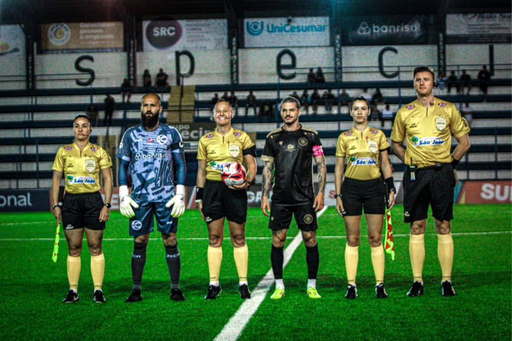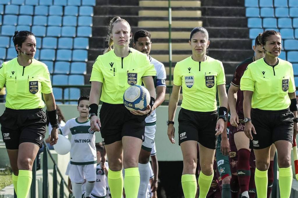 Ela destaca que ocupar o campo como árbitra vai além da realização pessoal. Para ela, é também uma forma de incentivar novas gerações a acreditarem que o futebol pode ser um espaço profissional para mulheres: