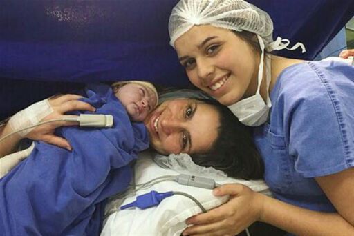 Durante a cesariana, quem assistiu a pequena nascer foi a irmã.
