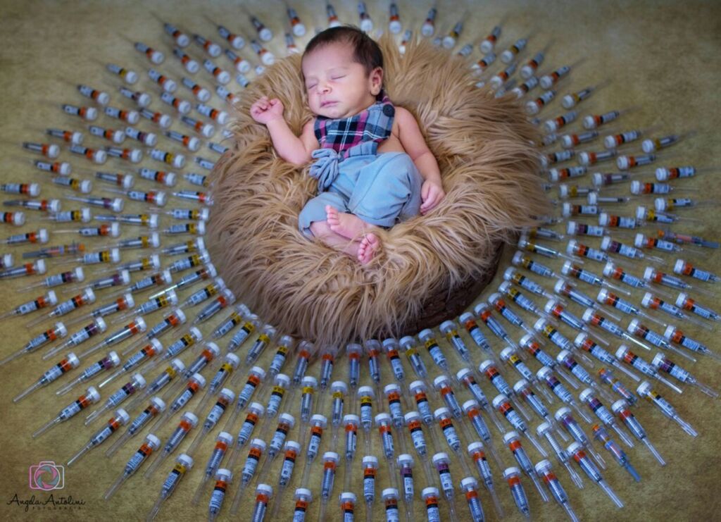 O menino veio ao mundo logo que passou pelo período crucial de seu desenvolvimento porque a mamãe, Nagila Frazzon Samara Chaves, 39 anos, descobriu que tem trombofilia (propensão ao entupimento das veias). Durante a espera por ele, ela precisou se submeter a mais de 300 injeções para garantir que o filho viria ao mundo cheio de saúde.