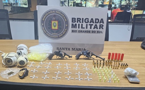 Um adolescente de 16 anos foi apreendido e um homem de 35 anos foi preso por tráfico de drogas e porte ilegal de arma por volta das 21h de sexta-feira (10), na Rua Fioravante Oliari, no Beco do Beijo, em Camobi, em Santa Maria.