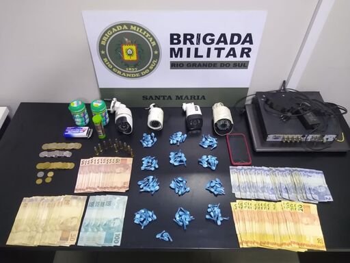 Com o auxílio de cães do canil dos policiais do 2º Batalhão de Polícia de Choque (2ºBPChq) foram localizadas em uma reciclagem 58 gramas de cocaína, 10 munições calibre 38, quatro câmeras de segurança, um aparelho DVR para gravar imagens, um notebook, um aparelho celular e a quantia de R$ 2.996,65.