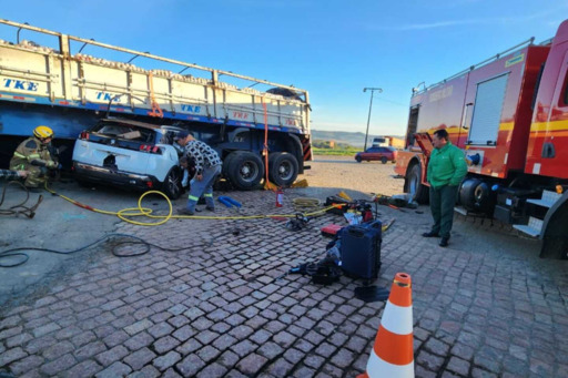 De acordo com testemunhas que viram o acidente, o caminhão estava realizando uma manobra de saída do posto de combustível quando foi atingido pelo veículo que vinha no sentido contrário. Com o impacto, o carro ficou preso na parte traseira do caminhão.