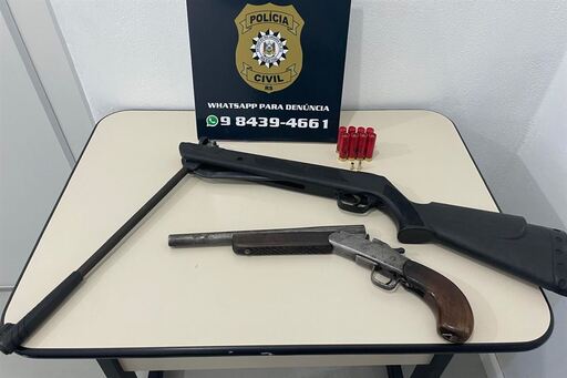 Uma garrucha calibre 28 e uma carabina de pressão com cano adaptado para calibre 22, além de munições foram apreendidas pela polícia