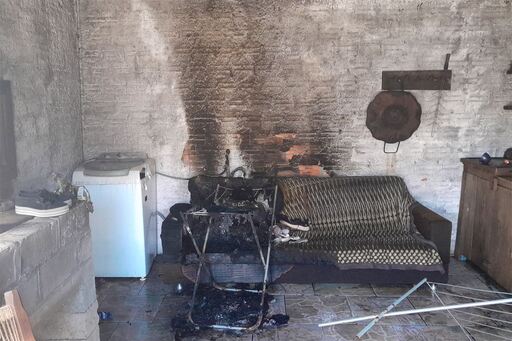 Chamas destruiram parte de um sofá, roupas e uma máquina de lavar