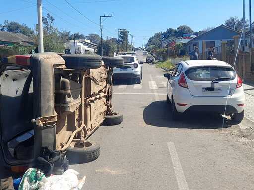 A guarnição da Brigada Militar recebeu uma denúncia de um acidente de trânsito envolvendo um veículo Volkswagen Parati, conduzido pelo homem, e um Ford Fiesta, que estava estacionado na via pública. Com o impacto, a Parati tombou na via.