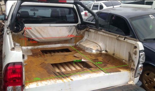 Parte da cocaína estava escondida no fundo falso da carroceria de uma picape