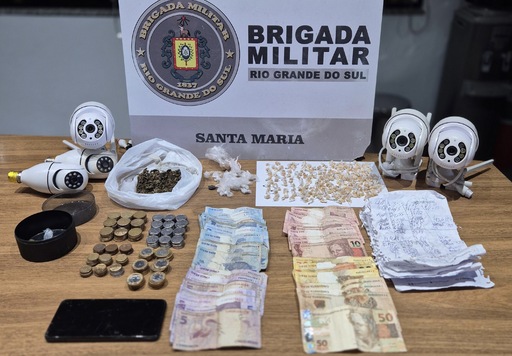 Ao todo, foram apreendidas 284 pedras de crack fracionadas, uma porção de 3,7 gramas de crack, 33,8 gramas de maconha, 1,3 gramas de cocaína, um aparelho celular, cinco câmeras de vigilância, anotações do tráfico e R$ 695,90.