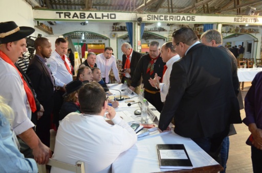 Em homenagem ao Dia do Gaúcho, a Câmara de Vereadores de Santa Maria realizou a sessão de terça-feira, no CTG Sepé Tiarajú, e muitos dos parlamentares, que são familiarizados com a vestimenta gaudéria, foram pilchados (foto), inclusive com chapéu. Já os vereadores que não são muito acostumados com o traje gaúcho, optaram pelo terno e gravata.