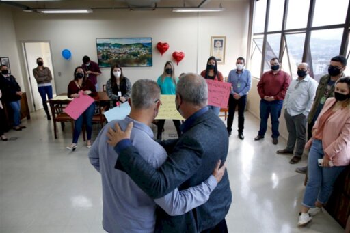 Recuperado da Covid-19, o prefeito Jorge Pozzobom (PSDB) reassumiu, nesta segunda-feira, a função de chefe do Executivo. Nos últimos 11 dias, o tucano ficou afastado da prefeitura para tratar da reinfecção de Covid-19. A administração estava a cargo do vice-prefeito, Rodrigo Decimo (PSL). Para recebê-lo, os funcionários do gabinete fizeram uma homenagem a Pozzobom, com cartazes de boas-vindas e frases motivadoras.