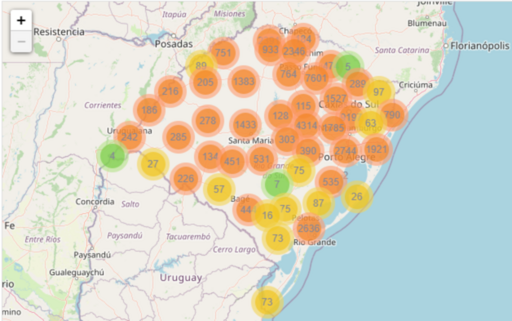Do total de casos, 64.681 (88%) são considerados recuperados e os outros 6.838 (9%) ainda estão em recuperação. Dos 497 municípios gaúchos, 468 cidades já contam com pelo menos um caso confirmado de Covid-19.