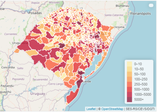 Dos óbitos registrados, cinco são na região central do Estado sendo um em Jaguari, três em Santa Maria e um em Santiago.