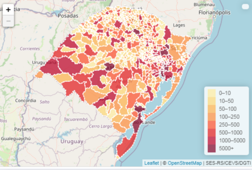 Em Caçapava do Sul, de acordo com o município, a morte aconteceu no domingo. O idoso estava internado no Hospital de Caridade Astrogildo de Azevedo em Santa Maria. Com esse caso, o município chega a 18 mortes pela doença.