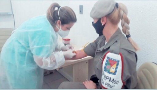 A Brigada Militar de Santa Maria participou, na manhã desta quinta-feira, do projeto de Soroprevalência de Covid-19, realizado em 10 municípios do Estado em profissionais da segurança pública. A pesquisa sobre o novo coronavírus é coordenada pela Santa Casa de Misericórdia de Porto Alegre. Em Santa Maria, única cidade participante da região, 177 policiais militares foram voluntários para a realização dos exames de sangue e participação do estudo clínico. Os profissionais fizeram o exame, que verifica se a pessoa está infectada ou já teve infecção pelo vírus, e responderam a um questionário com perguntas sobre o uso de máscaras faciais, luvas, álcool em gel e se, em algum momento, foi realizada quarentena.