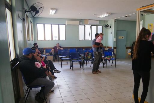 Devido às chuvas da semana passada, a sala de espera do setor infantil foi interditada. Nos dias com chuva intensa, a água entrou pela porta da frente e o teto também infiltrou.