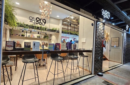Patrícia Parente - Todas as mudanças na empresa e as ideias acontecem naturalmente, quando inauguramos nossa loja no Praça Nova, disponibilizamos alguns poucos exemplares para uma leitura rápida, observamos que os clientes gostavam de ler, e até escrever, naquele ambiente com cheiro de café e pão de queijo. Nos dias de semana, quando a cafeteria é mais intimista, conseguimos conversar e conhecer melhor o nosso cliente, notamos que ele queria terminar a leitura em casa, pediam emprestados os livros, ou perguntavam se estavam a venda, ou seja, os clientes queriam mais do que somente um ambiente criado para a leitura. Para nossa surpresa, também tivemos parte de um livro escrito na nossa cafeteria, e não conseguimos ignorar o fato que existe uma conexão entre café e literatura, e assim demos início ao projeto Ora Pois Camobi, que abrimos recentemente, onde o arquiteto entendeu de forma brilhante a proposta sugerida por mim, e fez um projeto que foi além da literatura destacada na decoração, criou um espaço para que pudéssemos ter um pequeno acervo, no Centro Comercial Camobi.
